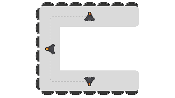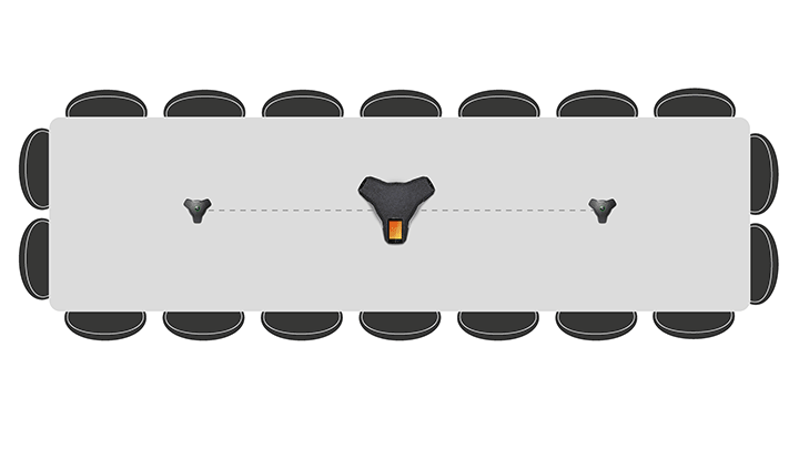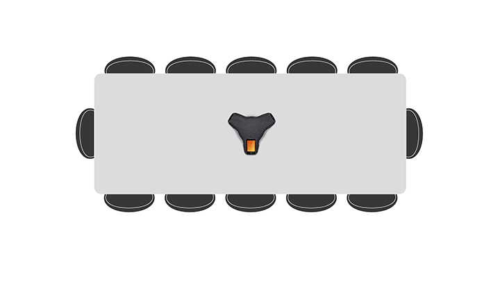 Used by itself, a single Konftel 800 conference phone provides great audio experience for meetings up to 12 participants. By adding 1 to 2 Konftel smart microphones, you can expand the pick-up range for larger conferences up to 20 people. For even larger scenarios with more than 20 people, the cascading feature lets you easily daisy-chain up to 3 Konftel 800 conference phones together for extended sound distribution and pick-up range for max coverage and rich audio.